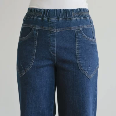 Denim jeans with side pockets, four-way stretch, and elastic waistband