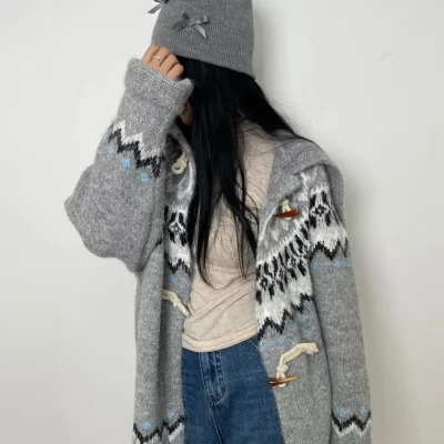 Pure 80% Wool Pretty Hooded Knit Cardigan