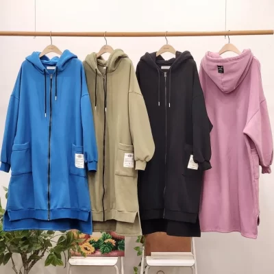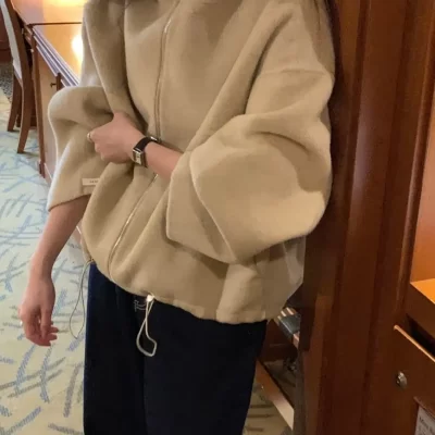 FWS) Bio-sheepskin hooded zip-up long jumper, free 88 available, fall/winter/spring outerwear
