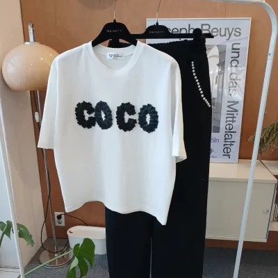 Lettering V-neck Set