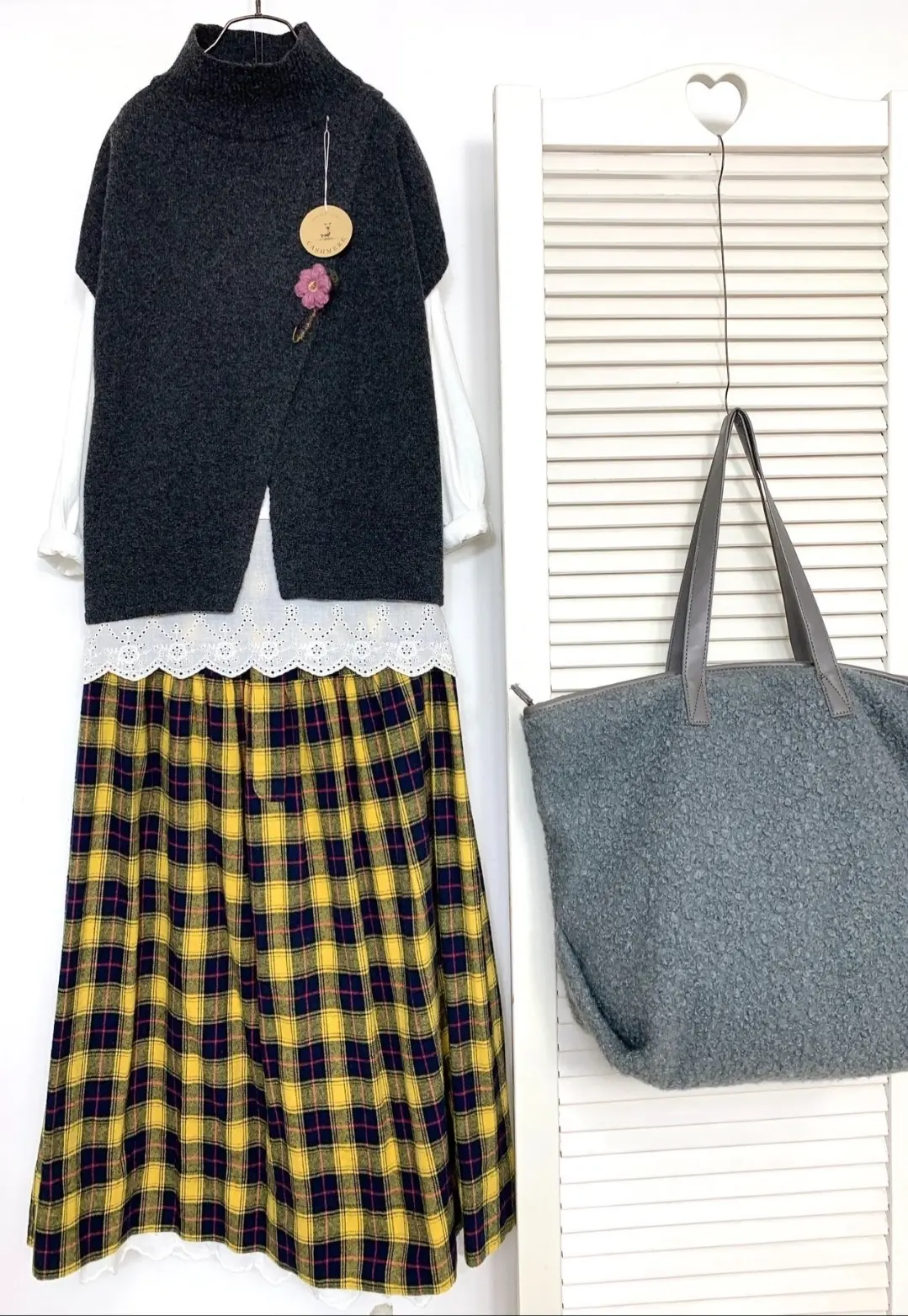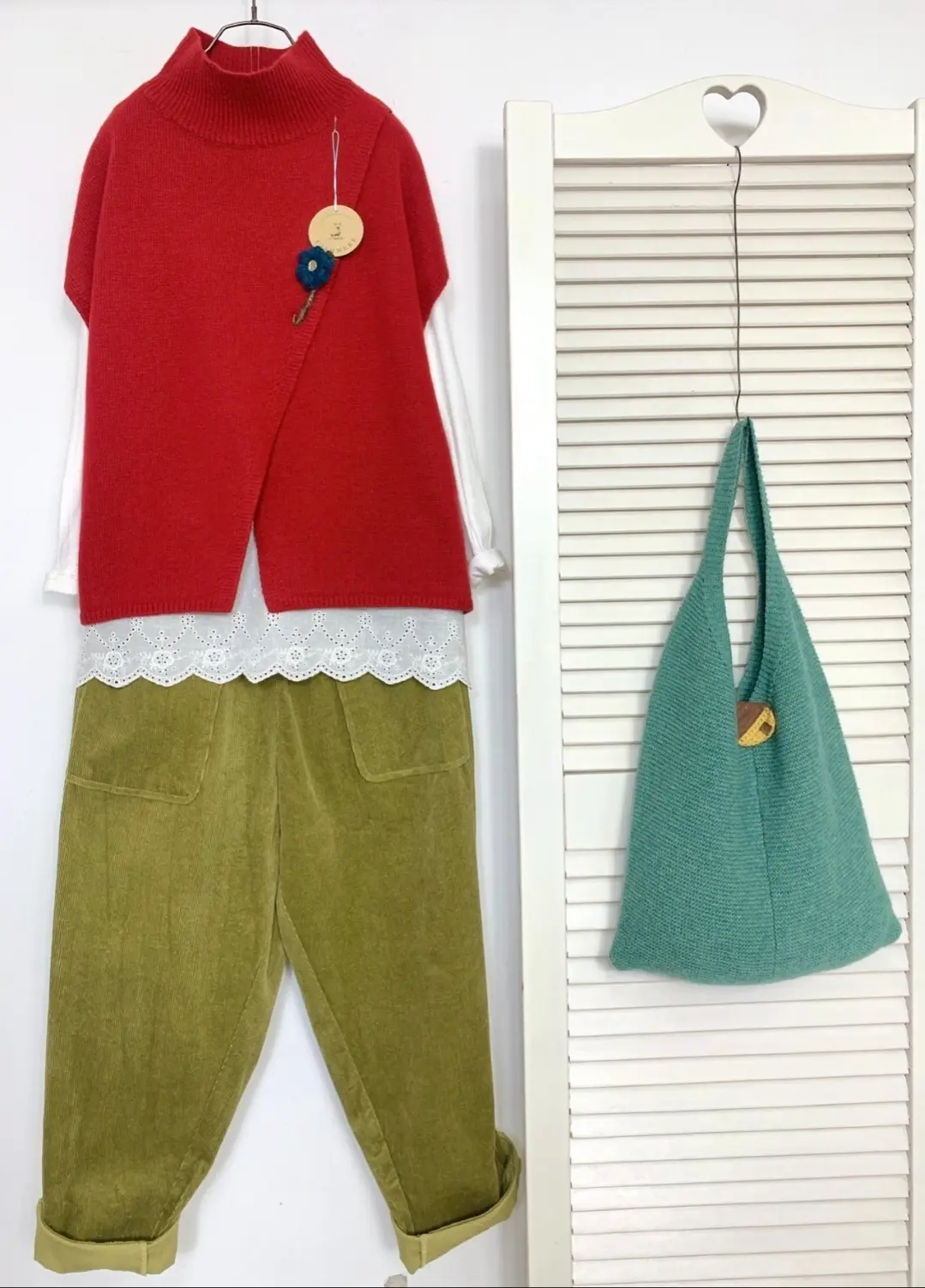 Cashmere Wrap Turtleneck Corsage Vest