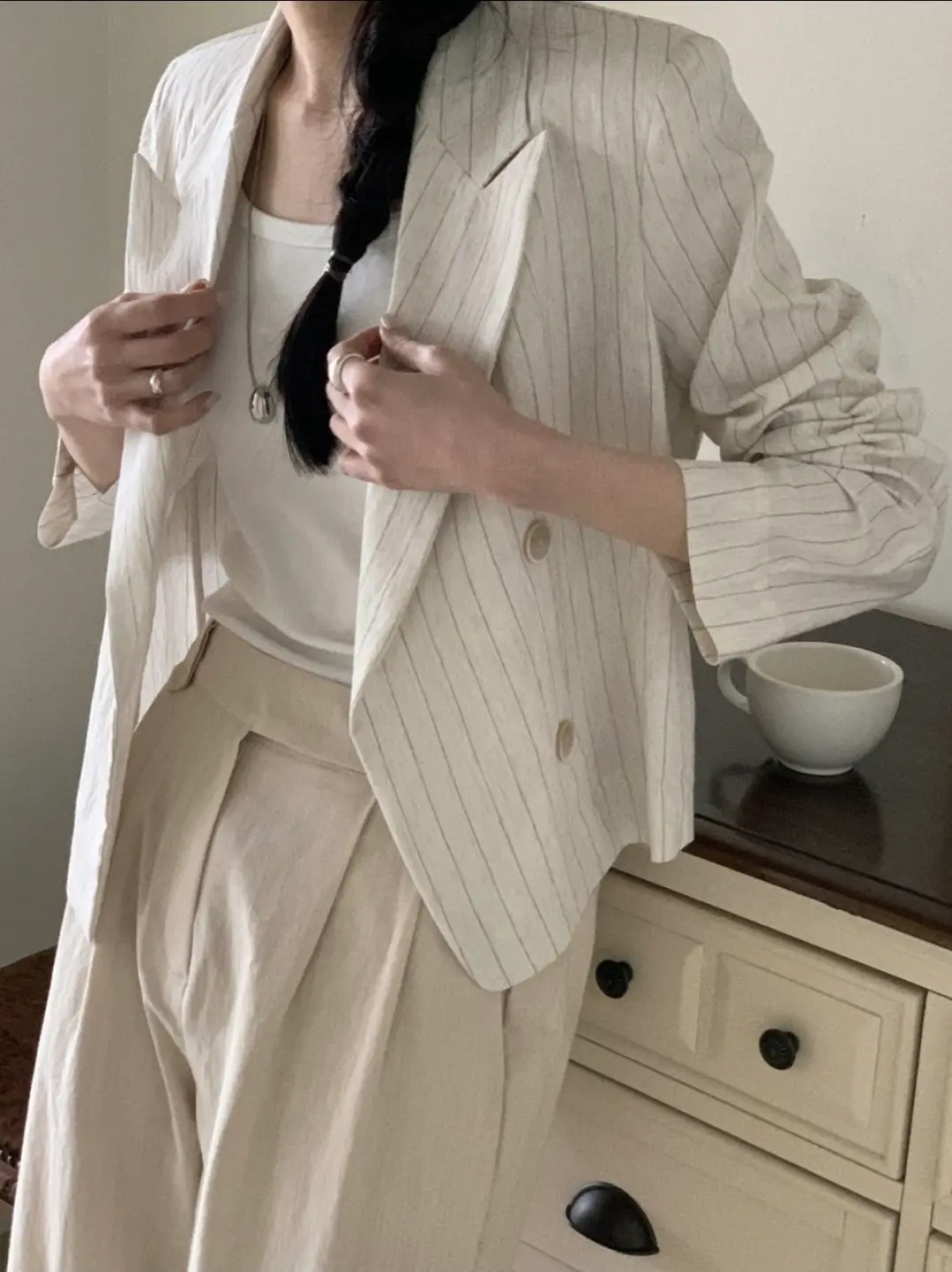Nice Striped Linen Jacket (Domestically Produced, Linen Jacket, Summer Jacket, SS New Arrival)