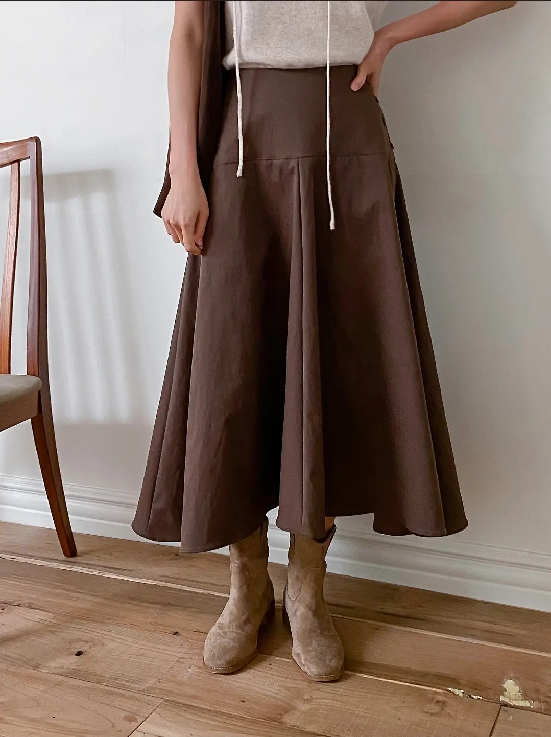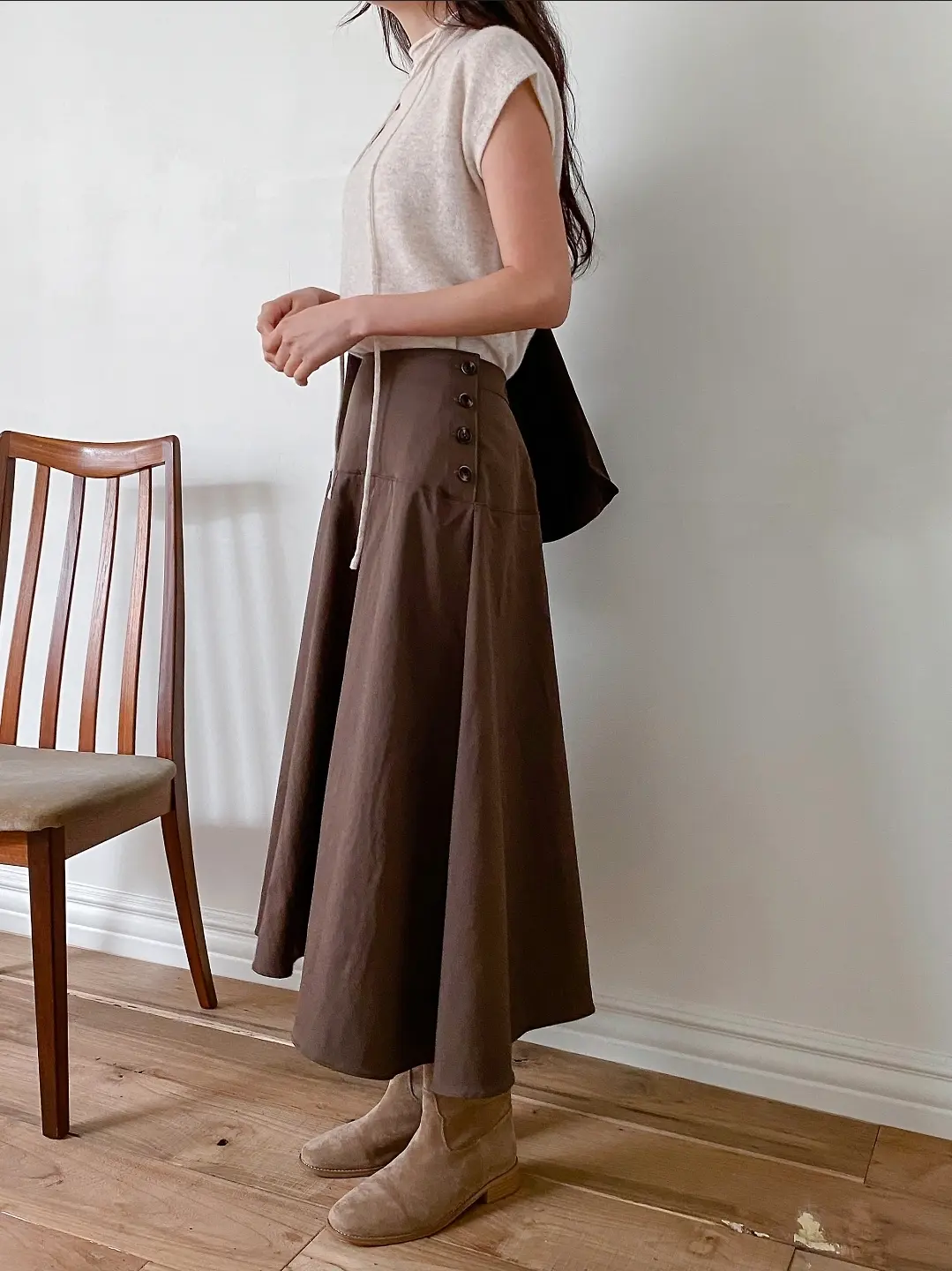 Suay Button Skirt 26SS Side Button Flare Long Skirt